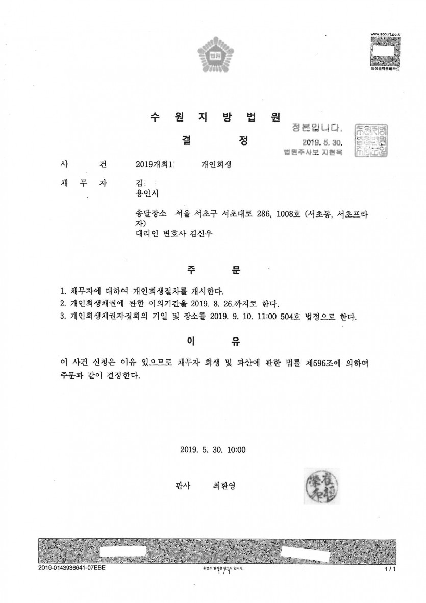 ***재신청사건이며, 수입이 늘어나 예전 사건보다 변제금은 늘어났으며, 주거비 중 일부를 추가생계비로 인정받아 개시결정이 된 사례입니다.