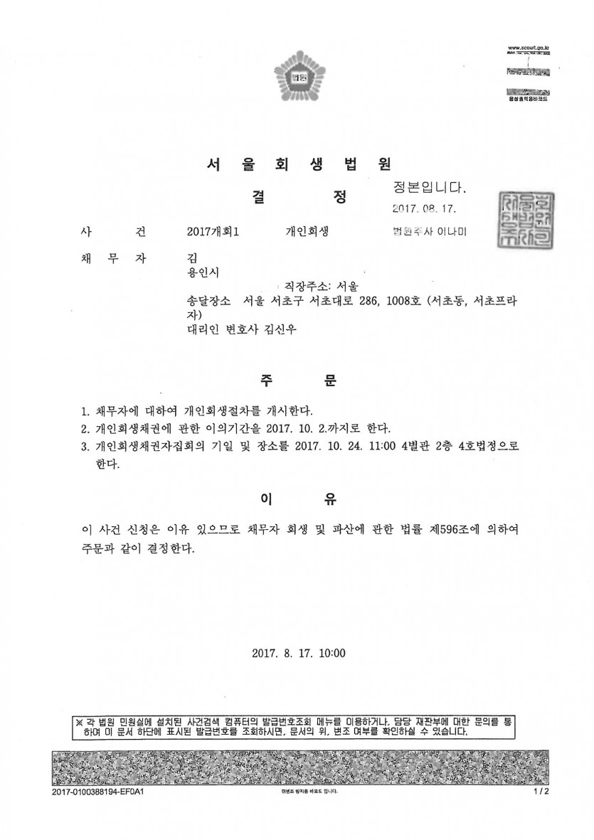 2. 접수 법원: 서울회생법원